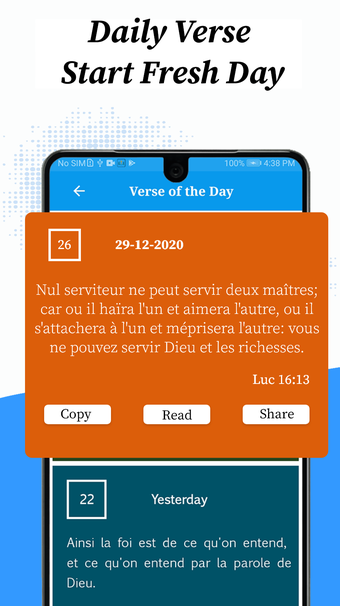Dessutom kan du läsa en vers för varje dag och få en Daglig Vers som håller dig uppdaterad med de senaste verserna och Guds ord. Vi tror också att att läsa Bibeln dagligen hjälper dig att hålla fokus och vara förankrad i sanningen.
